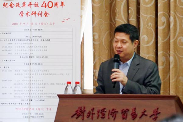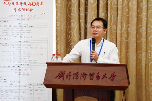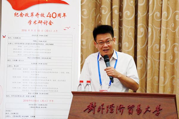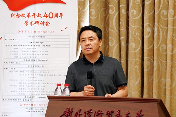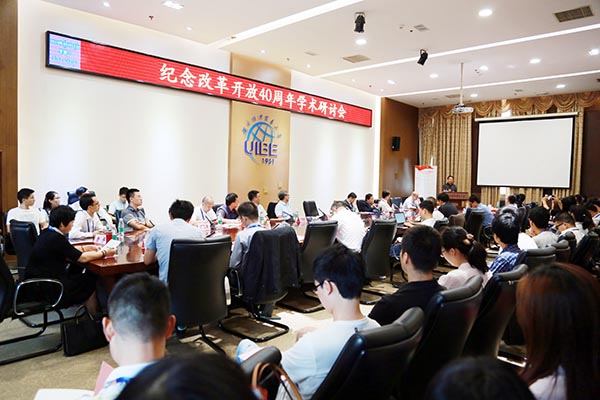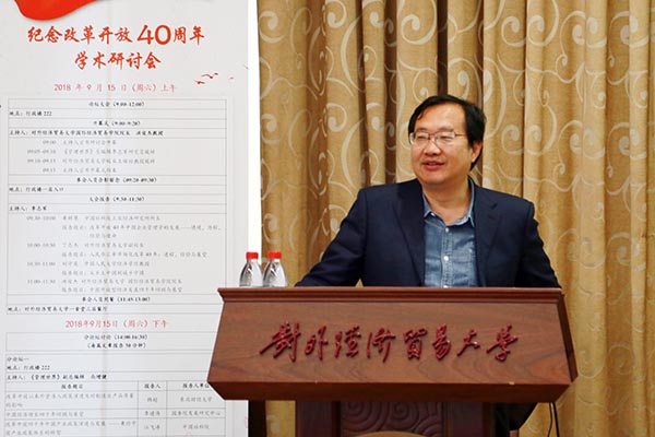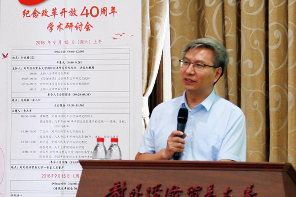 2018年9月15日, “纪念改革开放40周年学术研讨会”在我校隆重召开。来自国务院发展研究中心、中国社科院、北京大学、中国人民大学、北京师范大学、南开大学、同济大学、东北财经大学等兄弟单位学者齐聚一堂,从企业管理、人民币汇率市场化、开放型经济发展、产业政策转型、教育体制改革、政府绩效评估等方面展开讨论,回顾历史成绩,总结成功经验,为未来经济、社会发展建言献策。我校国际经济贸易学院院长、“长江学者”特聘教授洪俊杰主持开幕式。