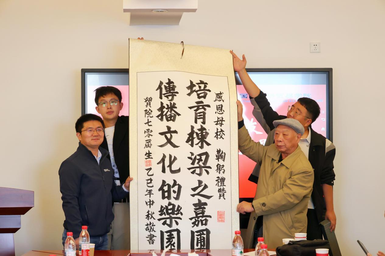秋高气爽,丹桂飘香。2025年10月10日,国际经济贸易学院在博学楼1224会议室举办1965级校友入学六十周年纪念会。十余位对外贸易经济系1965级部分校友、1964级校友代表张义、任课教师代表邱传俊、教务教师代表石玉润、李秋野老院长女儿李玲玲、李超英等重返惠园,共庆入学六十周年。对外经济贸易大学党委常委、副校长梅夏英,校友与基金工作处处长王小军,图书馆馆长唐兴全,国际经济贸易学院党委书记薛熠,国际经济贸易学院副处级组织员宋希永和学生代表参加纪念会。纪念会由国际经济贸易学院党委副书记杜姝君主持。 伴随着音乐《车道沟学子的同一首歌》,老校友们和与会领导嘉宾陆续落座,杜姝君老师主持开场,校友纪念会正式开始。 纪念会伊始,学校原党委副书记、副校长、1965级校友代表贾怀勤教授代表校友发言。他首先代表校友们向校院领导对返校聚会的热切关注和大力支持表示感谢,随后,他回顾了上世纪六十年代北京对外贸易学院(对外经济贸易大学前身)在李秋野院长领导下取得的初步成就,回忆李秋野院长带领广大师生在前马场校址与车道沟校址艰苦奋斗,培养新中国外贸人才的办学历史,抒发了校友们对于母校的赤子之情。随后贾怀勤教授介绍贸大校友会多年来的发展情况,他表示,1965级校友始终心系母校,持续关注学校和学院的各项事业发展。最后,他代表未能到场的校友转达了对65级同学们的寄语和对母校的感激之情,并衷心祝愿学校在新的发展征程中再创佳绩、续写辉煌。 ![]() 随后,对外经济贸易大学党委常委、副校长梅夏英致辞。梅校长向六五级校友返校致以热烈欢迎和崇高敬意,感谢他们六十年来为国家外贸事业和社会发展作出的卓越贡献。梅校长向校友们介绍学校近年发展成就与建设情况。对外经济贸易大学始终传承“为党育人、为国育才”的初心使命,已成为中国对外开放领域的顶尖学府,在服务国家战略中书写了新的时代篇章。之后,梅校长就学校与学院的人才培养成就、学术科研建设、所获荣誉奖项、社会服务硕果、校友工作建设等做出详细汇报。最后,梅校长表示,校友是学校最宝贵的财富,无论岁月如何变迁,贸大永远是校友们温暖的家。他衷心祝愿各位校友身体健康、阖家幸福,贸大将与广大校友一同在建设贸易强国的新征程中,共同书写更加辉煌的未来! ![]() 国际经济贸易学院党委书记薛熠发言。薛熠书记首先代表学院向返校的1965级校友代表致以热烈欢迎与诚挚问候,随后深情回顾了校友们当年怀揣报国理想、在校苦读的青春岁月,及工作奋斗、立志报国的艰辛历程,强调正是这种奋斗精神始终激励着一代又一代经贸人砥砺前行。随后,薛书记就学院人才培养,学科建设,荣誉成果,校友工作等做出补充介绍。薛书记表示,学院始终以“培养经贸领袖、创造学术新知、服务社会发展”为使命,与国家对外开放同频共振,为国际经贸人才培养与科学研究贡献经贸力量。学院高度重视校友工作,持续为校友搭建交流平台,期待更多的校友们常回家看看。同时,希望校友们继续关心支持学院的发展,助力学院在建设世界一流大学的道路上再创辉煌。最后,薛书记衷心祝愿本次纪念会圆满成功,祝愿各位校友身体健康、阖家幸福。 座谈会气氛热烈融洽,当年任课教师代表邱传俊老师与教务教师代表石玉润老师与李秋野老院长之女李玲玲老师、李超英女士依次发言,深情回忆了关于老院长,关于贸大与学院的过往故事,从怀揣赤子之心、在校苦读的青春岁月讲到投身工作,经世济民的奋斗历程,感激学校的培养,抒发对母校发展和祖国外贸事业进步的自豪,表达对学校的美好祝福。 发言环节结束后,举行1965级校友赠书仪式和书法作品赠送仪式。贾怀勤教授代表唐之享校友和阎戌辰校友分别向国际经济贸易学院、校友总会、图书馆捐赠图书,薛熠、王小军和唐兴全代表三单位接受捐赠。杨殿奎校友感恩母校,将书写的书法作品赠予学院,学院副处级组织员宋希永代表学院接受校友捐赠。 赠书仪式后,唐兴全馆长向校友颁发捐赠证书并发言。唐馆长代表图书馆向校友们捐赠图书、提供宝贵历史资料表达衷心感谢。他强调,校友们的宝贵捐赠为图书馆的建设与发展奠定了坚实基础,丰富了学校的文化底蕴。最后,他衷心祝愿各位老校友身体健康、福寿绵长,祝愿国际经济贸易学院各项事业蒸蒸日上、再创佳绩。 纪念会最后,各位校友与领导嘉宾到博学楼前合影留念,用镜头定格下这一具有重要意义的时刻。 10日下午,校友们在学院志愿者的带领下,参观了校史馆和中国对外经贸博物馆,回顾中国对外开放伟大进程。参观校史馆的过程中,校友们忆及亲身经历学校从北京车道沟迁至河南固始县的过程,看到了我校建校初期诸多历史名师以及授业恩师,一时间感慨万千,畅聊往事,追忆芳华岁月。之后,校友们又陆续参观了李岚清总理赠送的印章以及石广生部长的笔迹,追忆贸大的峥嵘岁月。六十年前,校友们怀揣“实业兴邦、经世济民”的理想踏入校园,在百废待兴的年代里苦读求索;六十年后,校友们已是德高望重的行业先贤,用一生践行了“博学诚信求索笃行”的校训初心。 此次 1965 级校友入学六十周年纪念会,以一场跨越甲子的相聚,串联起学院的过往荣光与未来期许。老校友们带着岁月沉淀的智慧与热忱归来,既是对青春岁