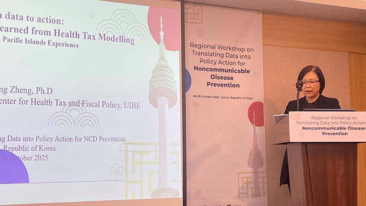 本次会议汇聚了来自亚太地区多个国家的政府部门代表、国际组织专家及科研机构学者,共同探讨如何通过数据与证据推动非传染性疾病防控政策的制定与实施。韩国疾病预防控制局于今年4月被正式指定为“世界卫生组织非传染性疾病与大数据利用合作中心”,此次会议也是其作为合作中心后的重要国际交流活动之一。 会议期间,我校世卫合作中心主任郑榕教授分享了南太平洋岛国在健康税政策评估与改革方面的实践经验,介绍了利用数据驱动健康税设计、监测政策成效及促进健康公平的具体做法。分享引起了与会国家的广泛关注,多个国家代表表示希望进一步提高健康税水平,以强化本国非传染性疾病防控与公共卫生可持续发展。 作为区域内重要的技术支持机构,对外经济贸易大学健康税与健康财政政策合作中心将持续为各国提供健康税政策评估、设计与实施的技术援助,助力区域国家将科学证据转化为切实可行的政策行动,为推动实现区域健康目标贡献中国力量。 |