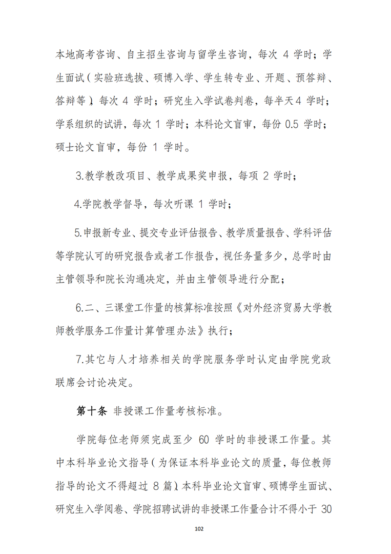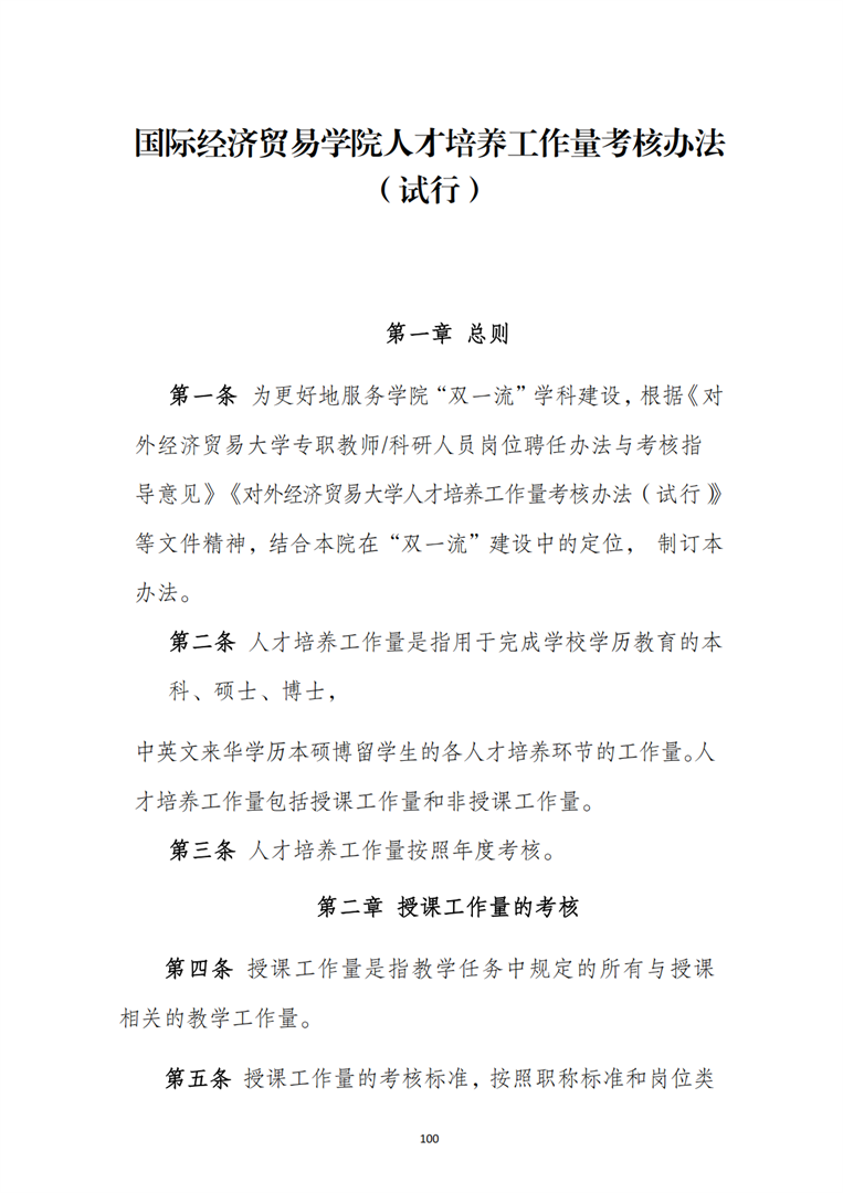 国际经济贸易学院人才培养工作量考核办法(试行)