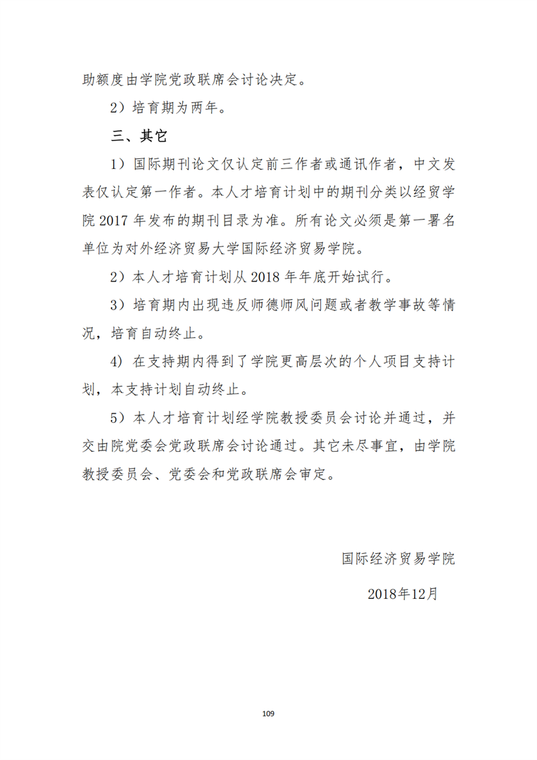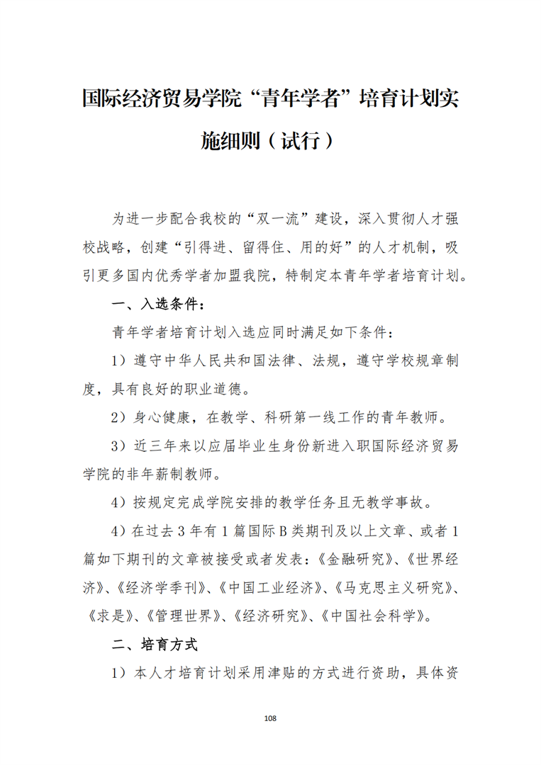 国际经济贸易学院“青年学者”培育计划实施细则(试行)